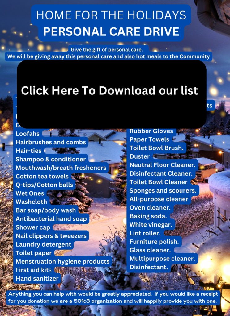Every year brings unique opportunities to make a significant impact, and we actively seek partnerships to enhance our outreach. During this event, our goal is to offer multiple personal care and household products to each family, ensuring they feel supported and cared for during the holiday season.