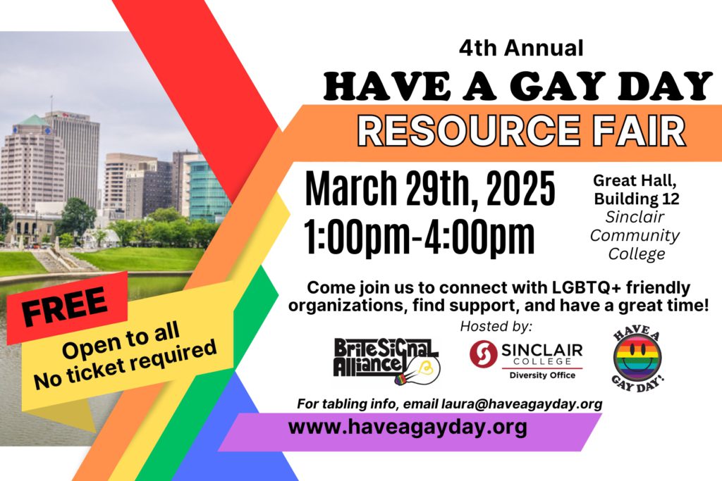 Every year, Have A Gay Day proudly hosts a vibrant resource fair in Dayton, Ohio. This cherished event takes place in the Great Hall of Building 12 at Sinclair University, providing a welcoming space for all. Attendees can enjoy a wealth of free resources, exciting door prizes, delicious refreshments, and invaluable community connections. There’s no cost to attend or to host a table at this event, ensuring that everyone can participate. We are committed to expanding this initiative, fostering meaningful connections, and giving back to our community.